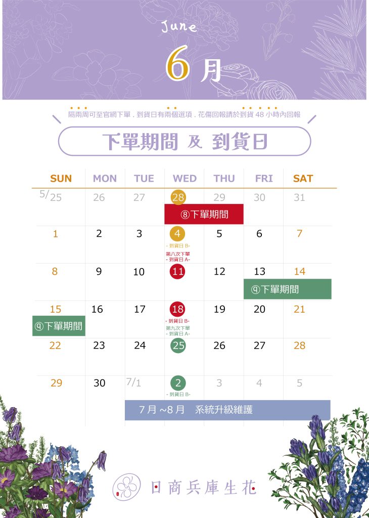 [6月]下單期間&到貨日公告